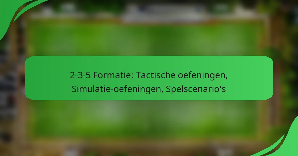 De 2-3-5 formatie is een klassieke opstelling in het voetbal die de nadruk legt op een agressieve aanvallende stijl met de indeling van twee verdedigers, drie middenvelders en vijf aanvallers. Om de effectiviteit te maximaliseren, kunnen coaches tactische oefeningen en simulaties implementeren die zich richten op positionering en beweging, waardoor spelers worden voorbereid op echte wedstrijdscenario’s. Deze oefeningen verbeteren niet alleen de teamcoördinatie, maar helpen spelers ook hun rollen binnen de formatie te internaliseren, wat zorgt voor een goed voorbereide selectie op wedstrijddag.