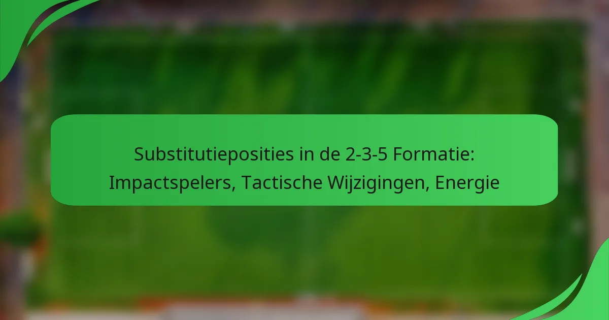 Read MoreSubstitutieposities in de 2-3-5 Formatie: Impactspelers, Tactische Wijzigingen, Energie