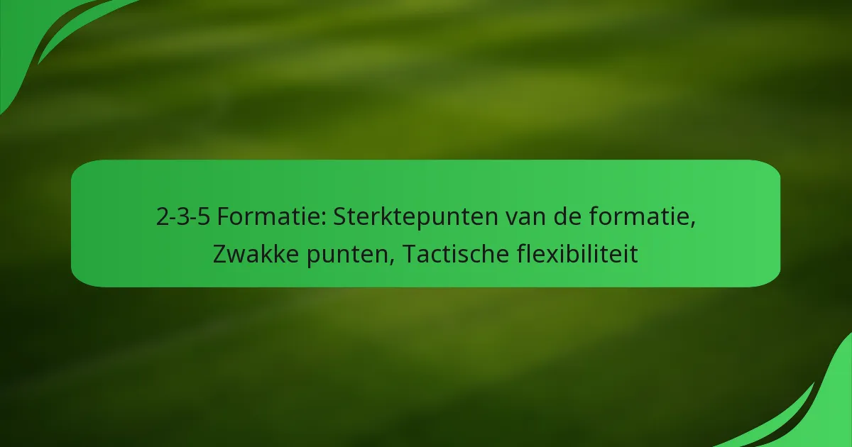 De 2-3-5 formatie is een traditionele opstelling in het voetbal met twee verdedigers, drie middenvelders en vijf aanvallers, die de nadruk legt op een agressieve aanvallende speelstijl. Hoewel het teams in staat stelt om het balbezit te domineren en te profiteren van een sterke aanwezigheid voorin, brengt het ook kwetsbaarheden met zich mee, vooral op het gebied van defensieve stabiliteit en aanpassingsvermogen aan moderne tactieken. Het begrijpen van zowel de sterke als de zwakke punten is cruciaal voor teams die deze klassieke formatie effectief willen implementeren.